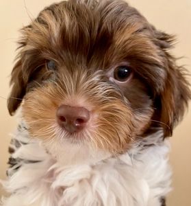 Even though our September 2018 litter doesn't show a drop of chocolate, each puppy carries both Parti and Biro (chocolate/white/gold) genetics!