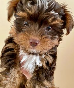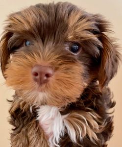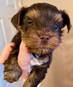 Coffi is highly intelligent and has a perfect silky, luxurious coat, which is often rare in Chocolate Yorkies.